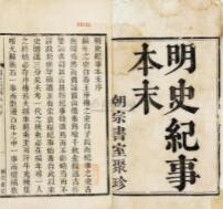 顺治十五年(1658),谷应泰主编的《明纪事本末》八十卷完成。谷应泰,字赓虞,号霖苍,直隶丰润(今河北丰润县)人,早有志于《明史纪事本末》的著述。自顺治十三年,他出任浙江按察司佥事时,就利用自己的有利条件广收邸报,并邀请一些社会名士编书,经过两年的努力,终于编辑成《明史纪事本末》。