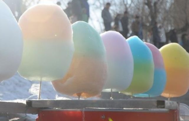 又棉花糖云:“沙糖经火运轮机,顷见纤维釜外飞。白絮一团棉 彷佛,只堪适口不成衣”。注曰:“棉花糖者,以蔗糖入能转之釜中, 下炙以火,使釜旋转,糖经热而融,藉旋转之力,遂成絮状之糖丝, 由釜旁出,望之真如棉絮也”。 (来源:《北京风俗类征》)