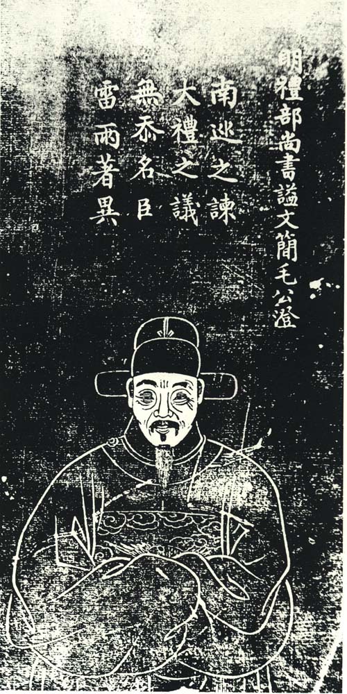 毛澄(1461年9月9日-1523年5月24日),字宪清,号白斋,晚更号三江,南直隶昆山人。 生于1461年八月六日(9月9日),弘治六年(1498)进士第一。授修撰。正德间,历礼部尚书。正德十二年(1517)七月,武宗自称威武大将军朱寿,游幸宣府,毛澄力谏不报。正德十四年二月,武宗又自称总督军务威武大将军总兵官太师镇国公朱寿,往两畿瞻东岳,毛澄历陈五不可,亦不报。 世宗即位,欲崇其所生,复抗疏力争。澄端亮有学行,论事侃侃不挠,世宗敬惮,虽数忤旨,而恩礼不衰。嘉靖二年(1523)二月三十日(3月16日)力请归,舟至兴济而于闰四月初十日(5月24日)卒,年六十三,赠少傅,谥文简。