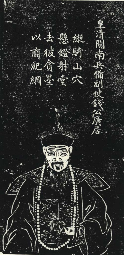 字大可,江南太仓(今属江苏)人,清初官吏。明崇祯十五年举人。清初授盐山知县,顺治八年官至陕西关南兵备副使,卒年八十三。钱广居石刻像刻于1827(清道光七年),清孔继尧绘,石蕴玉正书赞,谭松坡镌,为《沧浪亭五百名贤像》之一。像取自清代顾沅辑,道光九年刻本《吴郡名贤图传赞》,清孔继尧绘。